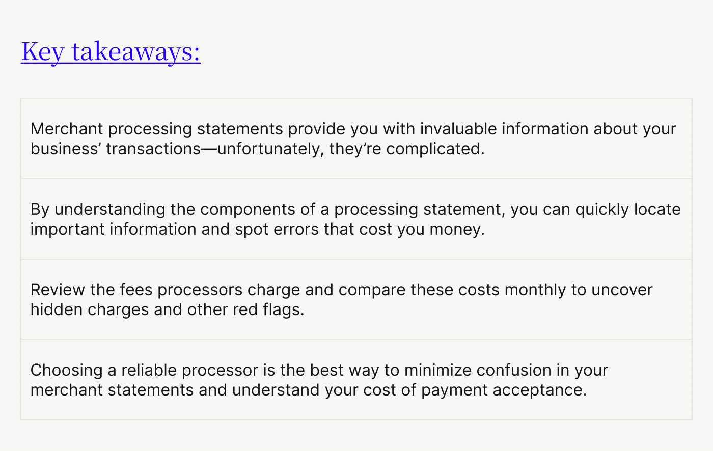While merchant processing statements are tough to parse, analyzing them will help you understand your processor's transparency better.