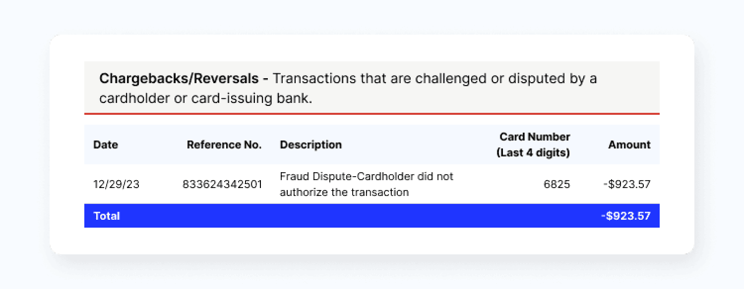However, neglecting to review these statements is a bad idea. They help you understand the cost of credit card acceptance (also called the effective rate) and the degree of chargeback fraud you're experiencing.