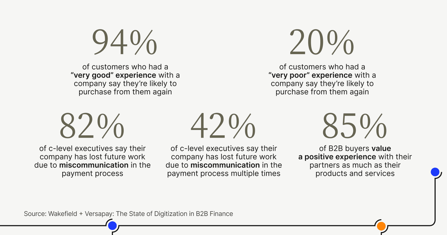 In this article, we'll examine 18 more accounts receivable and customer experience statistics that reveal why AR is more than just a back-office initiative. Finance leaders like CFOs will also understand why they should make customer experience a priority.