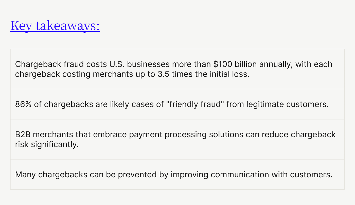 For B2B merchants, the increasing volume of credit card transactions means that chargeback risk is becoming a more pressing concern. As more buyers opt for the convenience of credit cards, B2B sellers need to be prepared to handle the associated risks.