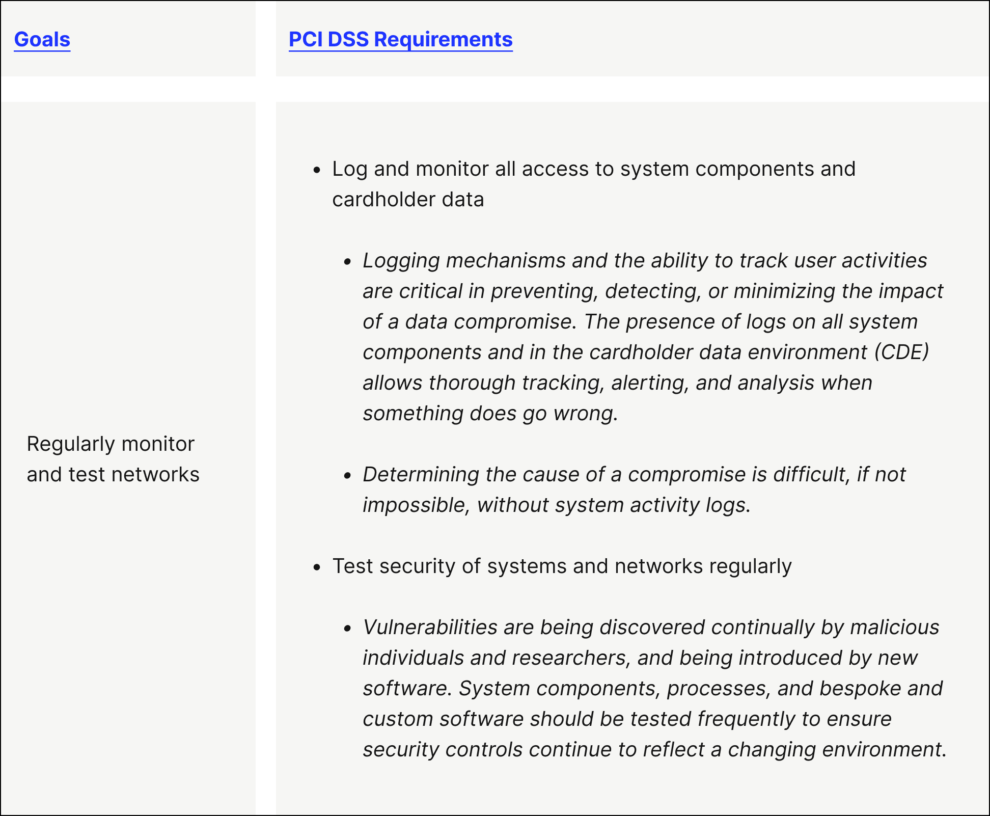 (Note that the ‘PCI DSS Requirements’ copy in the images below is taken from ‘Version 4.0’ of the ‘PCI DSS Requirements and Testing Procedures’.)