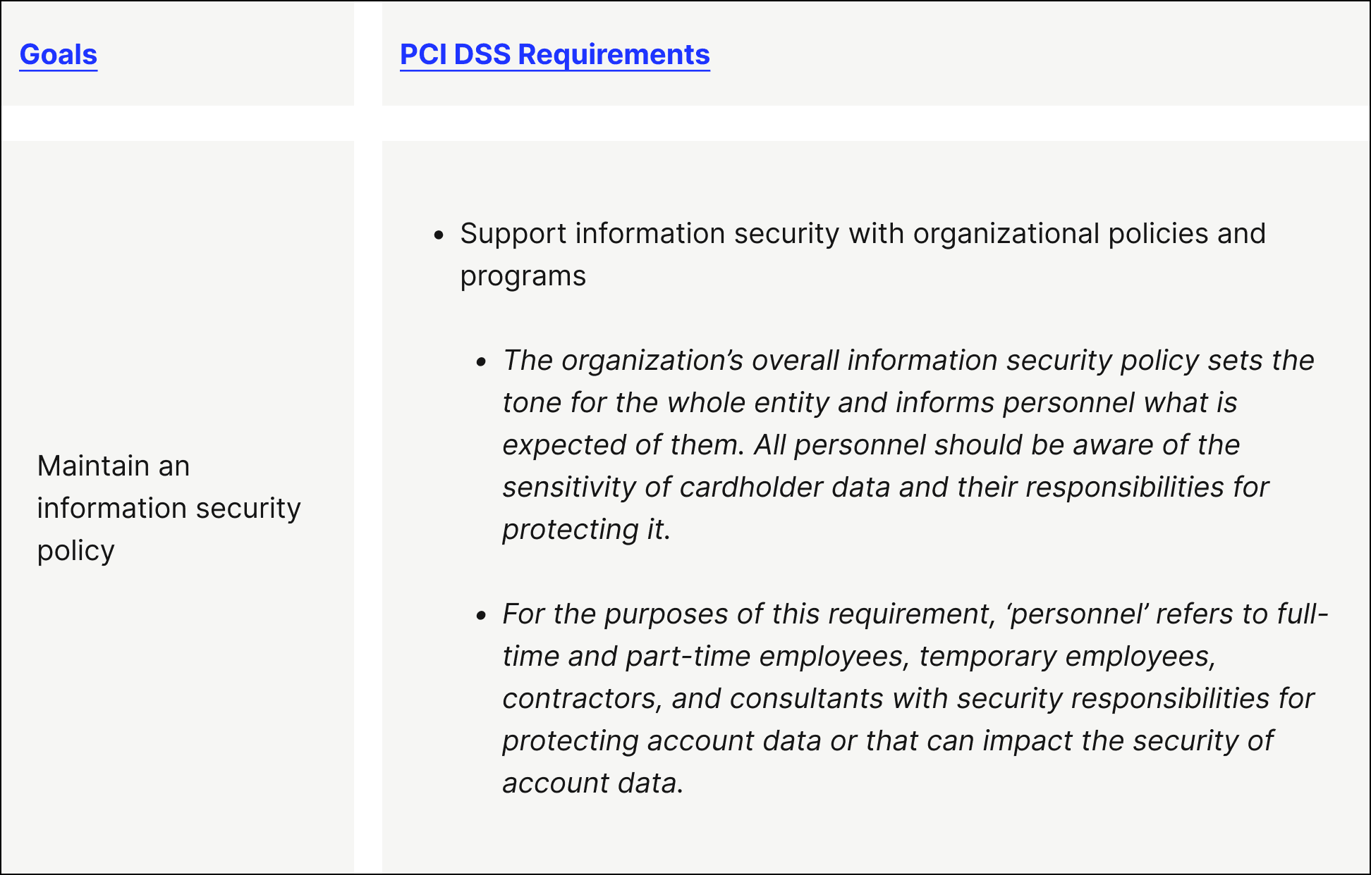 - PCI DSS Requirement 12 — Support information security with organizational policies and programs