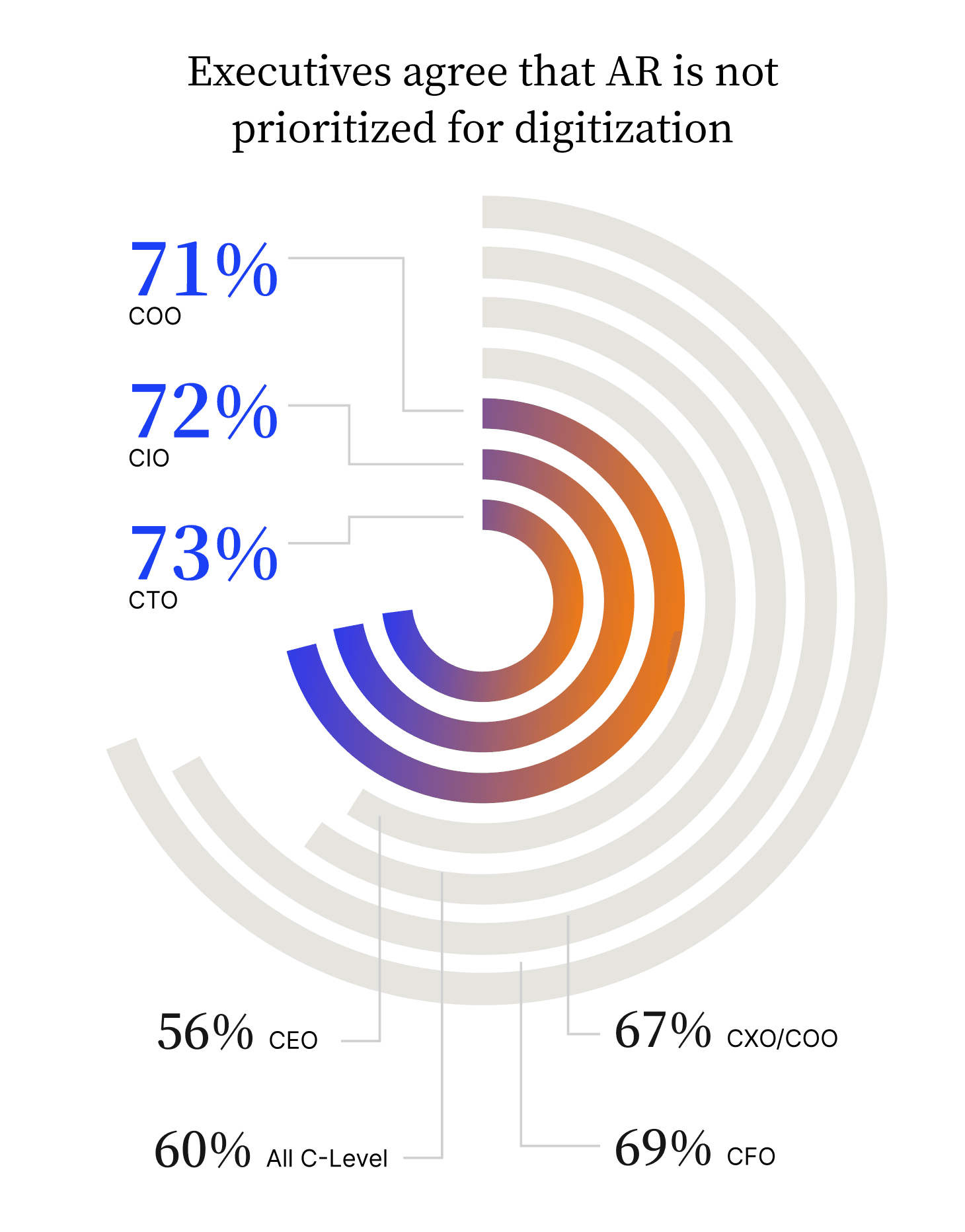 Accounts receivable (AR) is a major CX driver yet does not attract the technological investment it deserves. Versapay and Wakefield's report on the State of Digitization in B2B Finance revealed that 60% of C-level executives have not yet prioritized upgrading AR as part of their digital transformation initiatives.