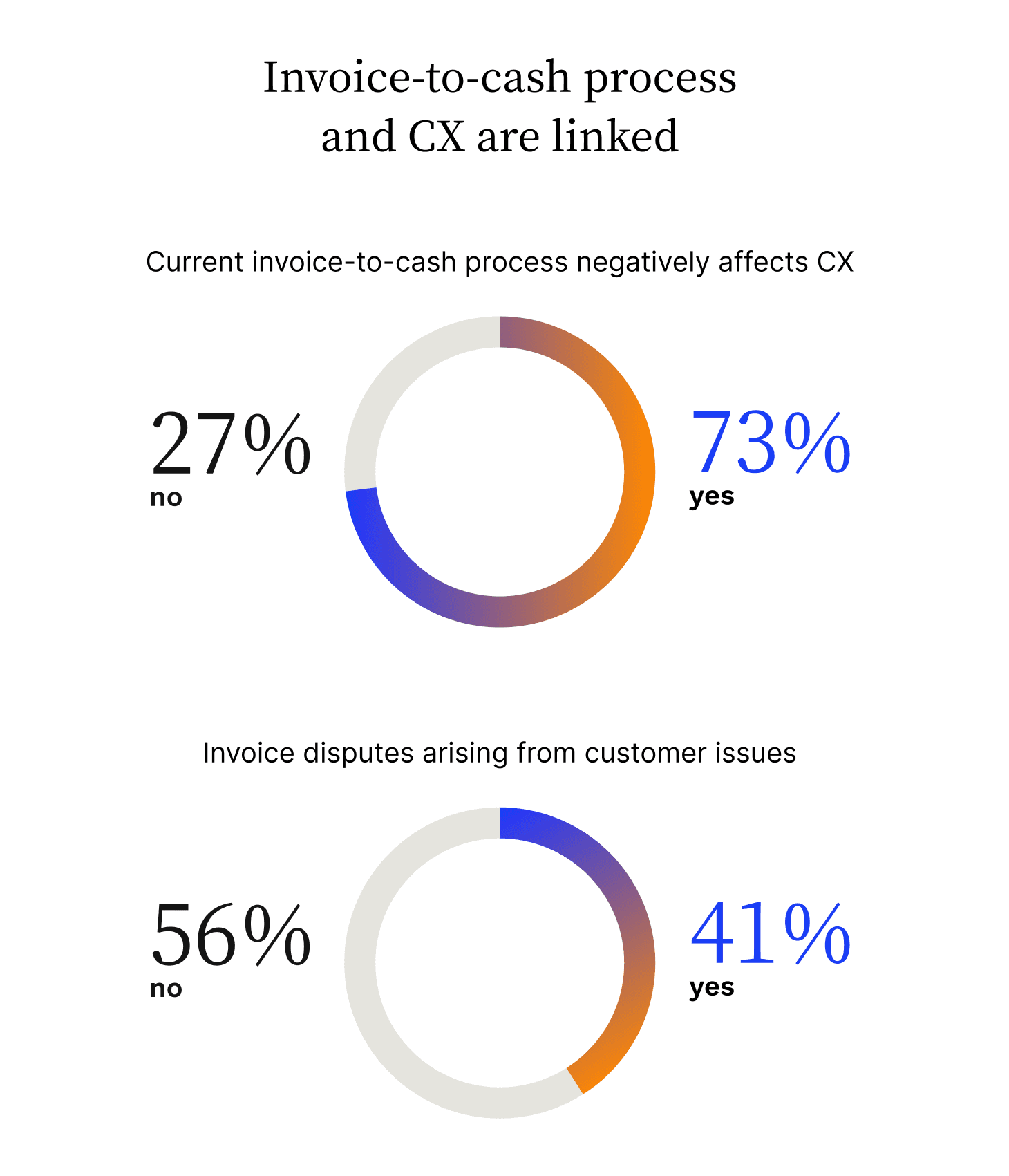 - 4) Invoice-to-cash is a CX-driver—Every business needs strong customer relationships to flourish in the long run. In the report we cited above, 73% of respondents reported their current invoice-to-cash process negatively affects CX, proving the link between invoice-to-cash and customer relationships and that automation merely papers over existing cracks in AR workflows.