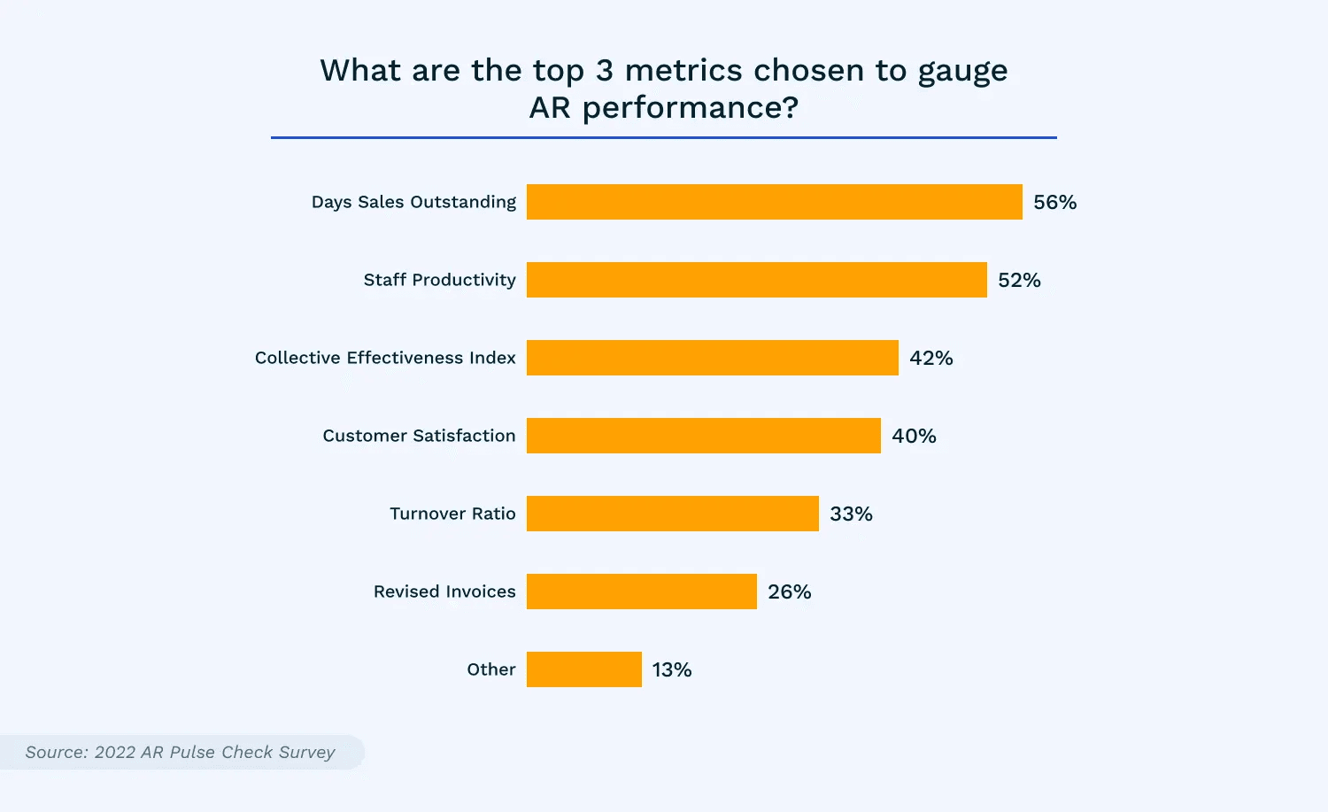 In a recent survey of business and finance leaders, collection effectiveness index was listed among the top metrics chosen to gauge AR performance. Forty-two percent of respondents ranked it as one of the three most important accounts receivable KPIs.