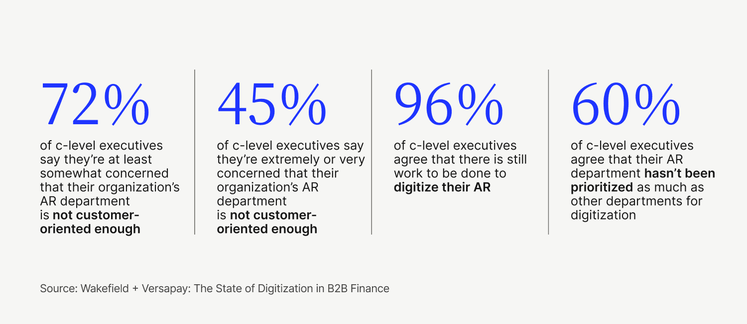 Of the 1,000 C-level executives we recently surveyed, 96% agreed that there's still work to be done to digitize their accounts receivable (AR).