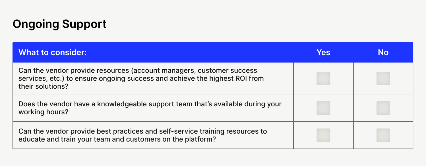 What support can the vendor offer us to ensure our ongoing success post-implementation?