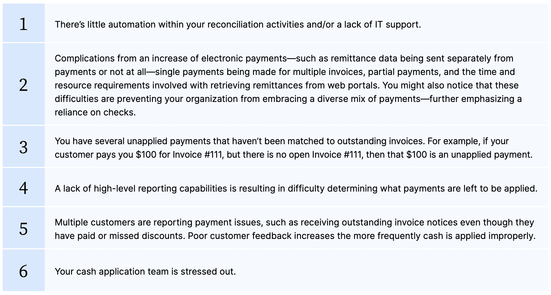 - The risks of manual cash application and applying payments incorrectly