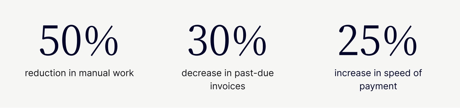 Our research shows collaborative AR processes lead to a faster collections process. In fact, you could expect the following phenomenal effects in ditching manual AR processes: